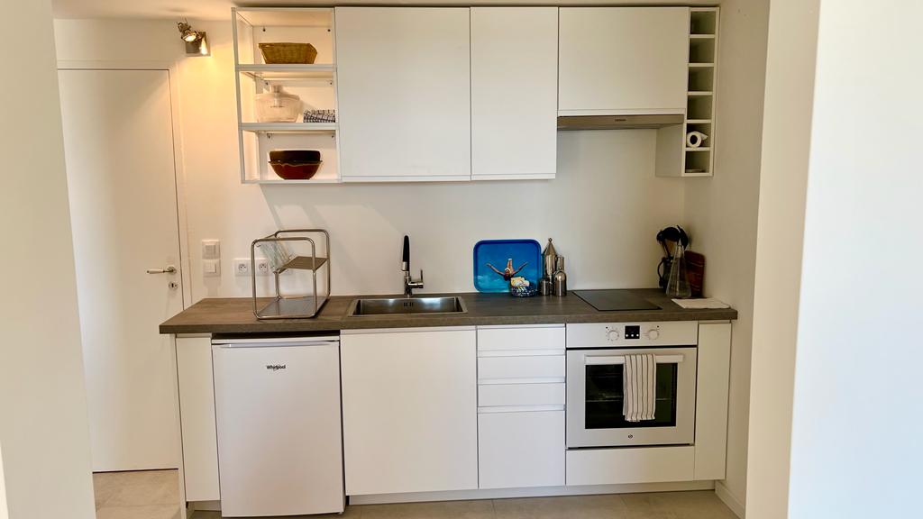 The apartment is on the ground floor of a villa. Access to the apartment is independent of that of the house. It is not air-conditioned but remains cool because it is built into the rock. Fans are also available.